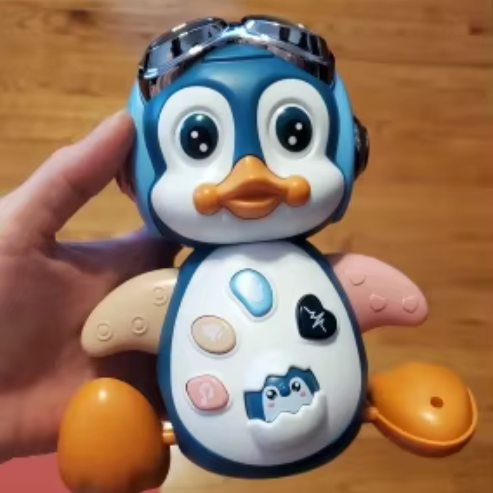 הפינגווין משלב אורות צבעוניים מהבהבים עם מגוון צלילים ומנגינות. ניתן להפעיל את הצלילים בלחיצה על בטן הפינגווין, והאורות מתחלפים בהתאם למקצב המוזיקה. המוצר כולל מבחר של מנגינות שונות, קולות של בעלי חיים ומקצבים מגוונים שמתנגנים במהלך המשחק.